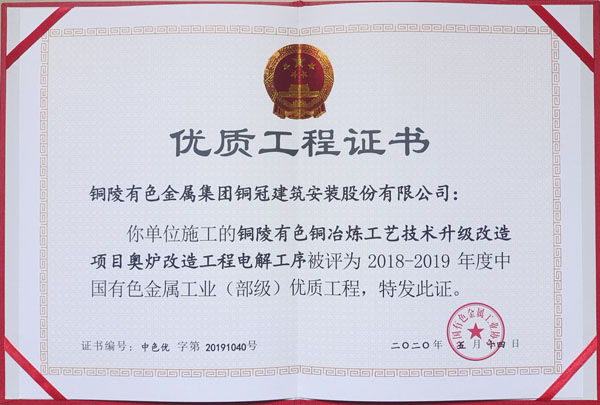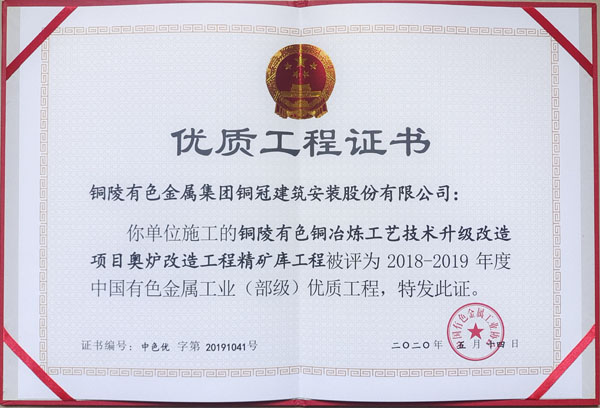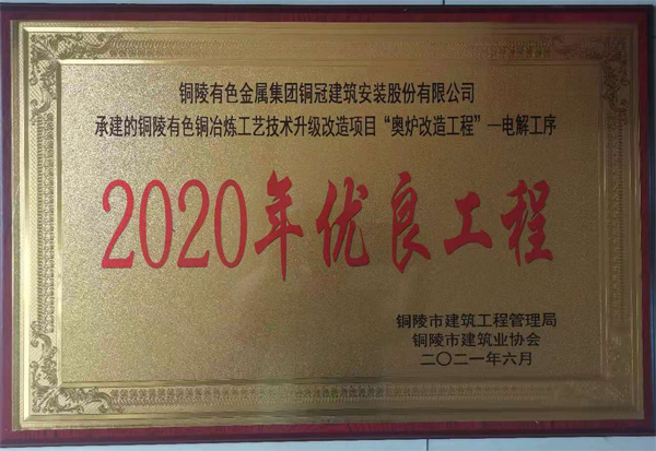 銅陵市2020年優(yōu)良工程(銅陵有色銅冶煉...
